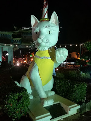第一天,我们到达古晋机场已接近早上9.15pm. 古晋的一位朋友 Moly 带我们吃必吃KOLO MEE. 接着我们先到猫博物馆参观。入门票RM3. 喜欢猫的粉丝应该会很喜欢。我不是什么爱猫者,但也被一些照片&古物给吸引。我女儿猫粉丝更是超爱啦哈。接着我们更到砂劳越文化村,入门如在柜台购买RM60, 上网买可以折扣RM6. 这个文化村10分我打8分,真的不错。个个不同的族人文化,建筑风格,直回票价。对我女儿更是实体学习。文化村每天都有表演哦。拍掌! 旁晚我们入住The Water Front Hotel. 这间酒店真的很方便,对面就是亚答街。晚上巧遇猫城一年一度美食节,享有美味晚餐。